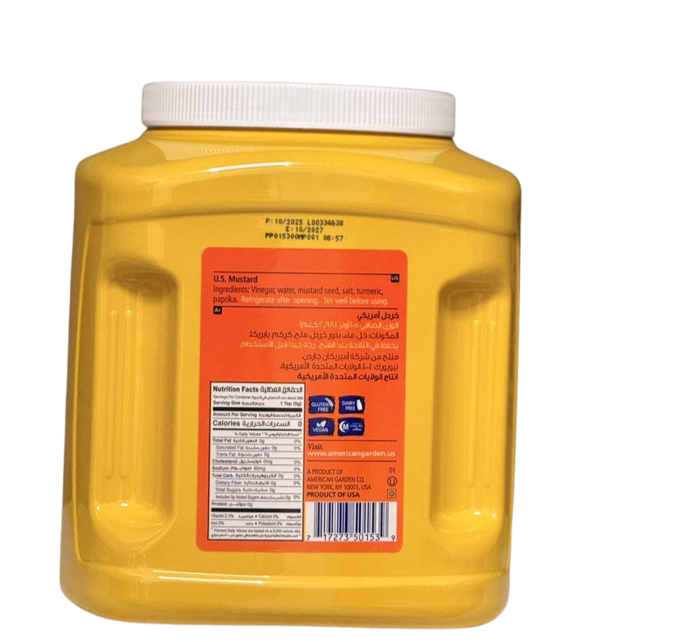 Whether you are preparing fast food, barbecue dishes, or homemade sauces, American Garden Yellow Mustard is a pantry essential for every kitchen in the UAE.